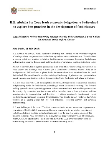 H.E. Abdulla bin Touq leads economic delegation to Switzerland