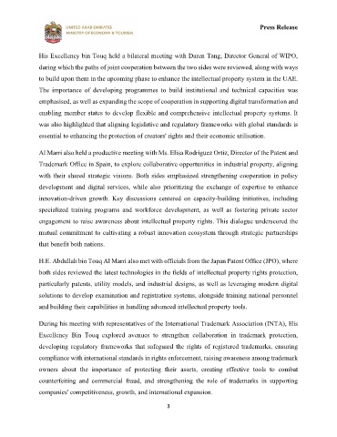 H.E. Abdullah bin Touq Al Marri also met with officials from the Japan Patent Office (JPO), where