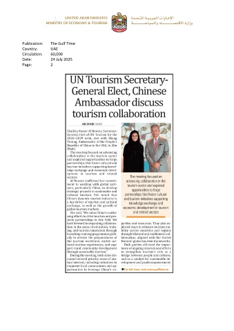 Publication: The Gulf Time Country: UAE Circulation: 60,000 Date: 24 July 2025 Page: 2