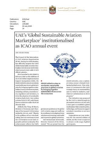 Publication: Al Etihad Country: UAE Circulation: 109,640 Date: 23 July 2025 Page: 14