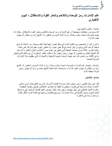 خيشلا ،هل روفغملا سسؤملا دلاولا ثرإو ،انتدحو ةوقو ،انبعش تاحومط تاراملإا ملع دّسجُي« :فاضأو