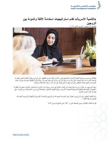 تذفن ،ًارخؤم ةسسؤملا اهتقلطأ يتلا »ةمحرو ةدوم« ةلمح عم ًانمازتو ،جاوزلا ةلحرم نم أدبت يتلاو ،ةايحلا ةيادب ذنم ةرسلأل ةميلسلا