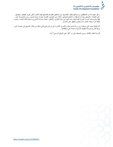 يدان ةمدخ« يف ليج ستلا للاخ نم هتلخد يذلا جمانربلا نأ ىلإ تراشأف ،عومشلاو كيماريسلا ةشرو نم تدافتسا يتلا دمحم ةمطاف امأ