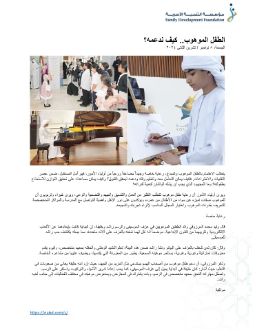 رصع نمض ،لبقتسملا لمأ وهف ،روملأا ءايلوأ نم ًايعوو ًافعاضم ًادهجو ةصاخ ةياعر ،عدبملاو بوهوملا لفطلاب مامتهلاا بلطتي