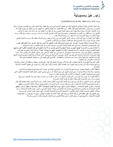 . ةسسؤم ىلإ ةردابملا ل ّ وحت دهشن مويلاو ،ةئراطلا ةيناسنلإا عاضولأل ةباجتسلااو ،يئاذغ لا نملأاو ةئيبلاو ةحصلاو ميلعتلا تلااجم