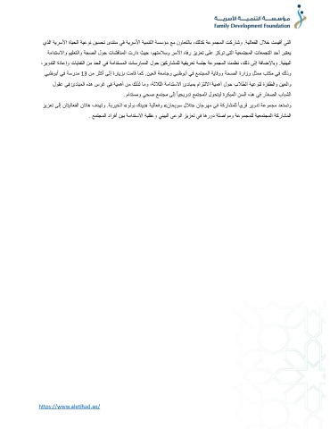 ةمادتسلااو ميلعتلاو ةحصلا لوح تاشقانملا تراد ثيح ،مهتملاسو رسلأا هافر زيزعت ىلع زكرت يتلا ةيعمتجملا تاعمجتلا دحأ ربتعي