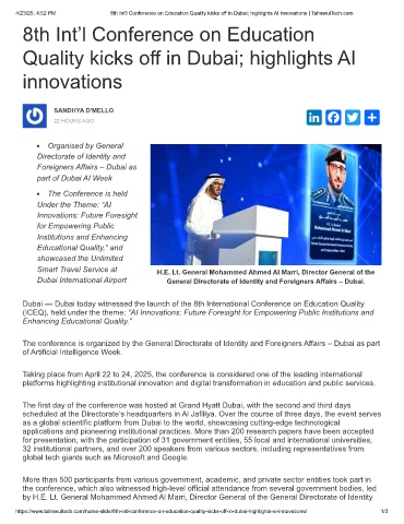 4/23/25, 4:52 PM 8th Int'l Conference on Education Quality kicks off in Dubai; highlights AI innovations | TahawulTech.com
