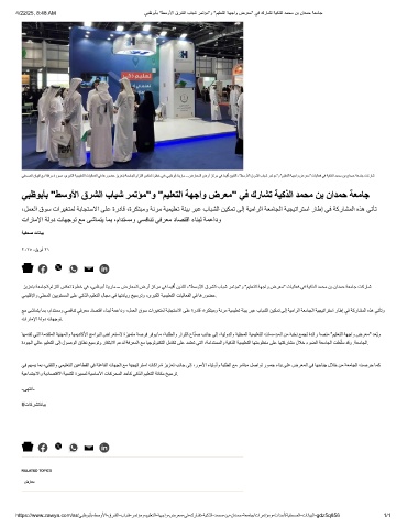 ﻲﻔﺣﺻﻟا نﺎﯾﺑﻟا ﻊﻣ ﺔﻘﻓرﻣ ةروﺻ ،ىرﺑﻛﻟا ﺔﯾﻣﯾﻠﻌﺗﻟا تﺎﯾﻟﺎﻌﻔﻟا ﻲﻓ ﺎھروﺿﺣ زﯾزﻌﺗﺑ ﺔﻌﻣﺎﺟﻟا مازﺗﻟا سﻛﻌﺗ ةوطﺧ ﻲﻓ ،ﻲﺑظوﺑأ ﺎﻧﯾرﺎﻣ – ضرﺎﻌﻣﻟا ضرأ زﻛرﻣ ﻲﻓ ﺎﻣﯾﻗ ُ أ نﯾذﻠﻟا ،"طﺳوﻷا قرﺷﻟا بﺎﺑﺷ رﻣﺗؤﻣ"و "مﯾﻠﻌﺗﻟا ﺔﮭﺟاو ضرﻌﻣ" تﺎﯾﻟﺎﻌﻓ ﻲﻓ ﺔﯾﻛذﻟا دﻣﺣﻣ نﺑ نادﻣﺣ ﺔﻌﻣﺎﺟ تﻛرﺎﺷ