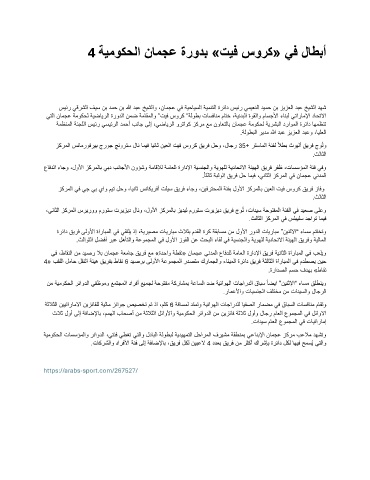 يتلا نامجع ةموكحل ةيضايرلا ةرودلا نمض ةماقملاو ”تيف سورك ”ةلوطب تاسفانم ماتخ ،ةيندبلا ةوقلاو ماسجﻷا ءانبل يتارامﻹا داحتﻻا