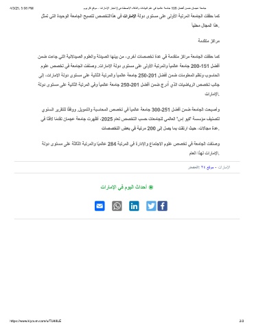موﻠﻋ صﺻﺧﺗ ﻲﻓ ﺔﻌﻣﺎﺟﻟا تﻔﻧﺻو .تارﺎﻣﻹا ﺔﻟود ىوﺗﺳﻣ ﻰﻠﻋ ﻰﻟوﻷا ﺔﺑﺗرﻣﻟاو ًﺎﯾﻣﻟﺎﻋ ﺔﻌﻣﺎﺟ 200-151 لﺿﻓأ