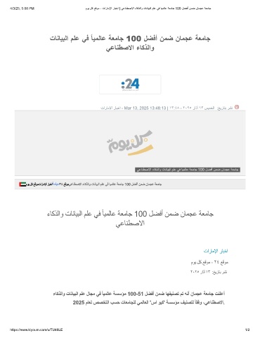 4/3/25, 5:08 PM موﯾ لﻛ ﻊﻗوﻣ - تارﺎﻣﻹا رﺎﺑﺧا | ﻲﻋﺎﻧطﺻﻻا ءﺎﻛذﻟاو تﺎﻧﺎﯾﺑﻟا مﻠﻋ ﻲﻓ ﺎﯾﻣﻟﺎﻋ ﺔﻌﻣﺎﺟ 100 لﺿﻓأ نﻣﺿ نﺎﻣﺟﻋ ﺔﻌﻣﺎﺟ
