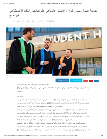 2025 سرﺎﻣ 13 ﺲﯿﻤﺨﻟا مﻮﯿﻟا ,ﺢﺻ ﺮﺒﺧ - ﻲﻋﺎﻨﻄﺻﻻا ءﺎﻛﺬﻟاو تﺎﻧﺎﯿﺒﻟا ﻢﻠﻋ ﻲﻓ ً ﺎﯿﻤﻟﺎﻋ ﻞﻀﻓﻷا 100ـﻟا ﻦﻤﺿ نﺎﻤﺠﻋ ﺔﻌﻣﺎﺟ