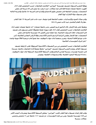 ﻒﯿﻨﺼﺗ ﻲﻓ قﻮﺒﺴﻣ ﺮﯿﻏQS ﺎظﻮﺤﻠﻣ ﺎًﻣﺪﻘﺗ ﺎﻧﺪﮫﺷ ﺪﻘﻓ .2025 مﺎﻌﻟ ﺺﺼﺨﺘﻟا ﺐﺴﺣ تﺎﻌﻣﺎﺠﻠﻟ ﻲﻤﻟﺎﻌﻟا