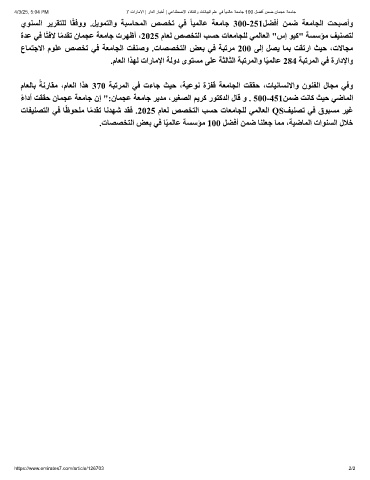 4/3/25, 5:04 PM 7 تارﺎﻣﻻا | رادﻟا رﺎﺑﺧأ | ﻲﻋﺎﻧطﺻﻻا ءﺎﻛذﻟاو تﺎﻧﺎﯾﺑﻟا مﻠﻋ ﻲﻓ ً ﺎﯾﻣﻟﺎﻋ ﺔﻌﻣﺎﺟ 100 لﺿﻓأ نﻣﺿ نﺎﻣﺟﻋ ﺔﻌﻣﺎﺟ