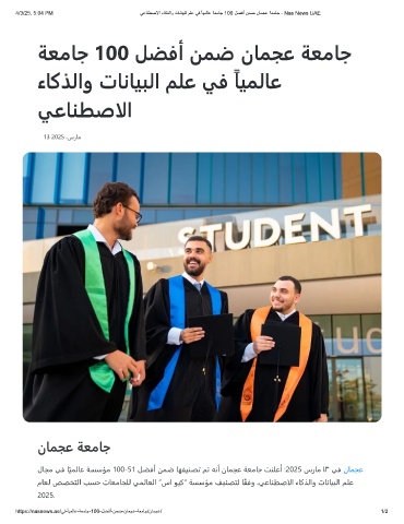 4/3/25, 5:04 PM ﻲﻋﺎﻧطﺻﻻا ءﺎﻛذﻟاو تﺎﻧﺎﯾﺑﻟا مﻠﻋ ﻲﻓ ً ﺎﯾﻣﻟﺎﻋ ﺔﻌﻣﺎﺟ 100 لﺿﻓأ نﻣﺿ نﺎﻣﺟﻋ ﺔﻌﻣﺎﺟ - Nas News UAE