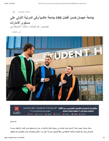 4/3/25, 5:03 PM لﺎﻣﻋﻷا لﺎﺟر | تارﺎﻣﻻا ىوﺗﺳﻣ ﻰﻠﻋ ﻰﻟوﻷا ﺔﺑﺗرﻣﻟا ﻲﻓو ً ﺎﯾﻣﻟﺎﻋ ﺔﻌﻣﺎﺟ 100 لﺿﻓأ نﻣﺿ نﺎﻣﺟﻋ ﺔﻌﻣﺎﺟ