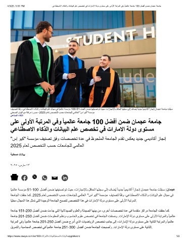 4/3/25, 5:01 PM ﻲﻋﺎﻧطﺻﻻا ءﺎﻛذﻟاو تﺎﻧﺎﯾﺑﻟا مﻠﻋ صﺻﺧﺗ ﻲﻓ تارﺎﻣﻻا ﺔﻟود ىوﺗﺳﻣ ﻰﻠﻋ ﻰﻟوﻷا ﺔﺑﺗرﻣﻟا ﻲﻓو ً ﺎﯾﻣﻟﺎﻋ ﺔﻌﻣﺎﺟ 100 لﺿﻓأ نﻣﺿ نﺎﻣﺟﻋ ﺔﻌﻣﺎﺟ