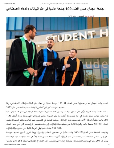 4/3/25, 5:00 PM نطوﻟا ةدﯾرﺟ › ﻲﻋﺎﻧطﺻﻻا ءﺎﻛذﻟاو تﺎﻧﺎﯾﺑﻟا مﻠﻋ ﻲﻓ ً ﺎﯾﻣﻟﺎﻋ ﺔﻌﻣﺎﺟ 100 لﺿﻓأ نﻣﺿ نﺎﻣﺟﻋ ﺔﻌﻣﺎﺟ