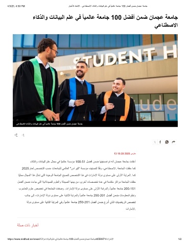 https://www.aletihad.ae/news/ﺎﻛذﻟاو-تﺎﻧﺎﯾﺑﻟا-مﻠﻋ-ﻲﻓ-ﺎﯾﻣﻟﺎﻋ-ﺔﻌﻣﺎﺟ-100-لﺿﻓأ-نﻣﺿ-نﺎﻣﺟﻋ-ﺔﻌﻣﺎﺟ/4558971/تارﺎﻣﻹا 1/2
