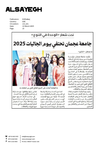 Publication: Al Khaleej Country: UAE Circulation: 121,141 Date: 13 March 2025 Page: 15