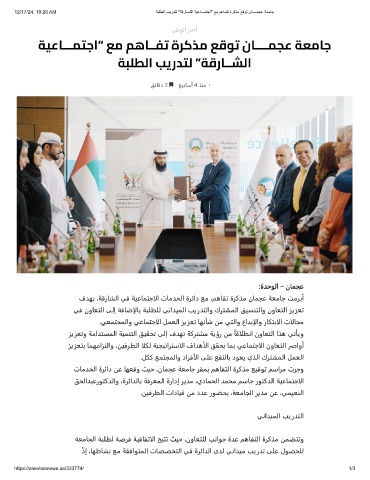 12/17/24, 10:26 AM ﺔﺑﻠطﻟا بﯾردﺗﻟ "ﺔﻗرﺎــﺷﻟا ﺔﯾﻋﺎـــﻣﺗﺟا" ﻊﻣ مھﺎــﻔﺗ ةرﻛذﻣ ﻊﻗوﺗ نﺎــــﻣﺟﻋ ﺔﻌﻣﺎﺟ
