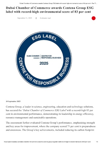 https://pantimearabia.com/dubai-chamber-of-commerce-awards-centena-group-esg-label-with-record-high-environmental-score-of-83-per-cent/ 1/3