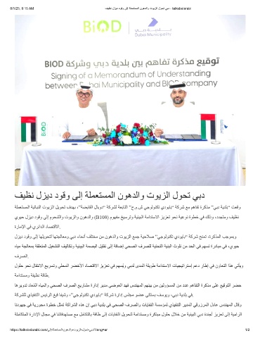 ﺔﻠﻤﻌﺘﺴﻤﻟا ﺔﯿﺗﺎﺒﻨﻟا تﻮﯾﺰﻟا ﻞﯾﻮﺤﺗ فﺪﮭﺑ ،”ﺔﻀﺑﺎﻘﻟا لﺎﺑود“ ﺔﻛﺮﺸﻟ ﺔﻌﺑﺎﺘﻟا ”ح.م.ش ﻲﺟﻮﻟﻮﻨﻜﺗ يدﻮﯾﺎﺑ“ ﺔﻛﺮﺷ ﻊﻣ ﻢھﺎﻔﺗ ةﺮﻛﺬﻣ ”ﻲﺑد ﺔﯾﺪﻠﺑ“ ﺖﻌﻗو