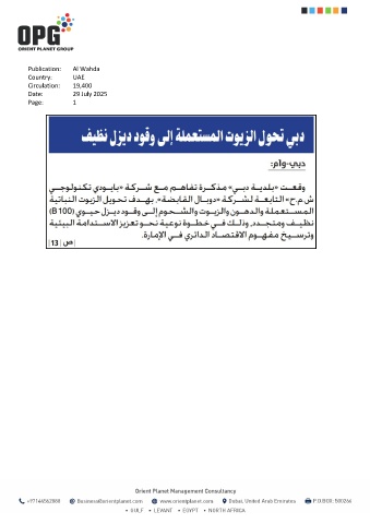 Publication: Al Wahda Country: UAE Circulation: 19,400 Date: 29 July 2025 Page: 1