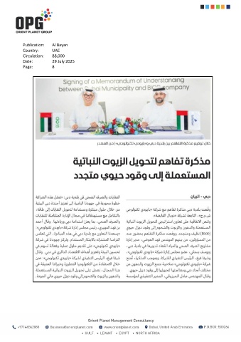 Publication: Al Bayan Country: UAE Circulation: 88,000 Date: 29 July 2025 Page: 8