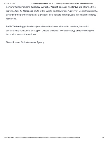 7/30/25, 5:15 PM Dubai Municipality Partners with BiOD Technology to Convert Waste Oils into Renewable Biodiesel