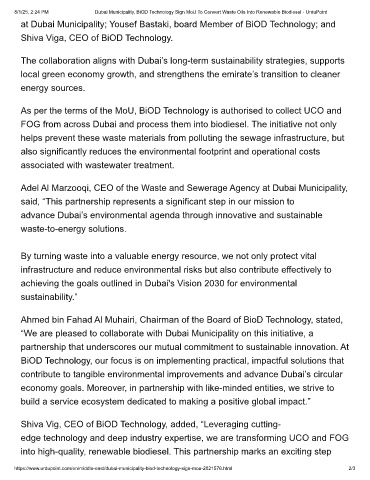 8/1/25, 2:24 PM Dubai Municipality, BiOD Technology Sign MoU To Convert Waste Oils Into Renewable Biodiesel - UrduPoint