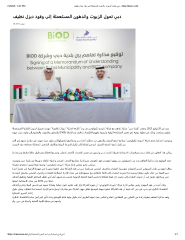 ﺔﻠﻤﻌﺘﺴﻤﻟا ﺔﻴﺗﺎﺒﻨﻟا تﻮﻳﺰﻟا ﻞﻳﻮﺤﺗ فﺪﻬﺑ ،”ﺔﻀﺑﺎﻘﻟا لﺎﺑود“ ﺔﻛرشﻟ ﺔﻌﺑﺎﺘﻟا ”ح.م.ش ﻲﺟﻮﻟﻮﻨﻜﺗ يدﻮﻳﺎﺑ“ ﺔﻛرش ﻊﻣ ﻢﻫﺎﻔﺗ ةﺮﻛﺬﻣ ”ﻲﺑد ﺔﻳﺪﻠﺑ“ ﺖﻌﻗو .2025 ﻮﻴﻟﻮﻳ 28 ﻲﻓ ﻲﺑد