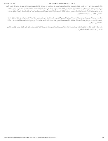 فاﺪھأ ﺰﯾﺰﻌﺗو ﺔﺌﯿﺒﻟا ﻦﯿﺴﺤﺗ ﻲﻓ ﻢﮭﺴﺗ ﺔﻟﺎﻌﻓو ﺔﯿﻠﻤﻋ لﻮﻠﺣ ﻢﯾﺪﻘﺗ ﻰﻠﻋ ﺰﻛﺮﺗ ﺔﻛﺮﺸﻟا دﻮﮭﺟ نإ "ﻲﺟﻮﻟﻮﻨﻜﺗ يدﻮﯾﺎﺑ" ﺔﻛﺮﺷ ةرادإ ﺲﻠﺠﻣ ﺲﯿﺋر يﺮﯿﮭﻤﻟا ﺪﮭﻓ ﻦﺑ ﺪﻤﺣأ لﺎﻗو