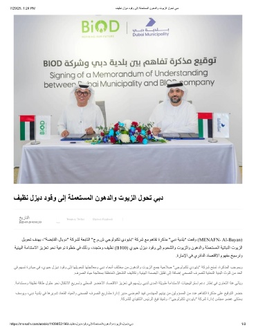 ﻞﯾﻮﺤﺗ فﺪﮭﺑ ،"ﺔﻀﺑﺎﻘﻟا لﺎﺑود" ﺔﻛﺮﺸﻟ ﺔﻌﺑﺎﺘﻟا "ح.م.ش ﻲﺟﻮﻟﻮﻨﻜﺗ يدﻮﯾﺎﺑ" ﺔﻛﺮﺷ ﻊﻣ ﻢھﺎﻔﺗ ةﺮﻛﺬﻣ "ﻲﺑد ﺔﯾﺪﻠﺑ" ﺖﻌﻗو (MENAFN- Al-Bayan)