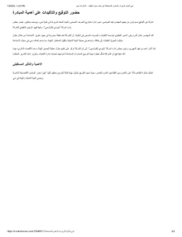لوﻠﺣ لﻼﺧ نﻣ ﺔﻣادﺗﺳﻻا زﯾزﻌﺗ دوﮭﺟ ﻲﻓ ﺔﯾروﺣﻣ ﺔطﻘﻧ دﻌﺗ ﺔﻛارﺷﻟا نأ ،ﺔﯾدﻠﺑﻟا ﻲﻓ ﻲﺣﺻﻟا فرﺻﻟاو تﺎﯾﺎﻔﻧﻟا ﺔﺳﺳؤﻣﻟ يذﯾﻔﻧﺗﻟا رﯾدﻣﻟا ،ﻲﻗوزرﻣﻟا لدﺎﻋ سدﻧﮭﻣﻟا دﻛأ