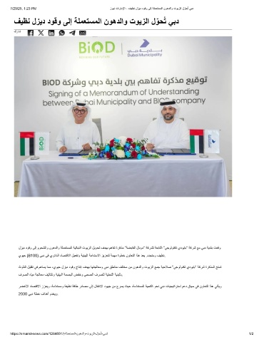 لزﯾد دوﻗو ﻰﻟإ موﺣﺷﻟاو نوھدﻟاو ﺔﻠﻣﻌﺗﺳﻣﻟا ﺔﯾﺗﺎﺑﻧﻟا توﯾزﻟا لﯾوﺣﺗ فدﮭﺑ مھﺎﻔﺗ ةرﻛذﻣ ”ﺔﺿﺑﺎﻘﻟا لﺎﺑود“ ﺔﻛرﺷﻟ ﺔﻌﺑﺎﺗﻟا ”ﻲﺟوﻟوﻧﻛﺗ يدوﯾﺎﺑ“ ﺔﻛرﺷ ﻊﻣ ﻲﺑد ﺔﯾدﻠﺑ تﻌﻗو