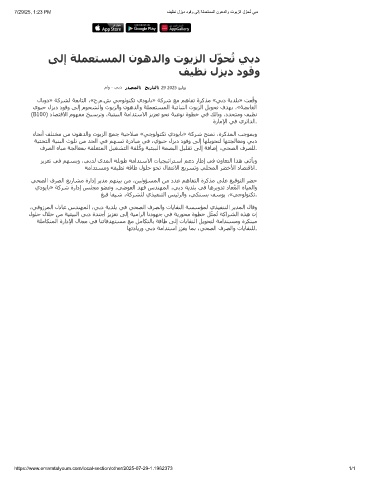 ﺔﯿﺘﺤﺘﻟا ﺔﯿﻨﺒﻟا ثﻮﻠﺗ ﻦﻣ ﺪﺤﻟا ﻲﻓ ﻢﮫﺴﺗ ةردﺎﺒﻣ ﻲﻓ ،يﻮﯿﺣ لﺰﻳد دﻮﻗو ﻰﻟإ ﺎﮫﻠﻳﻮﺤﺘﻟ ﺎﮫﺘﺠﻟﺎﻌﻣو ﻲﺑد