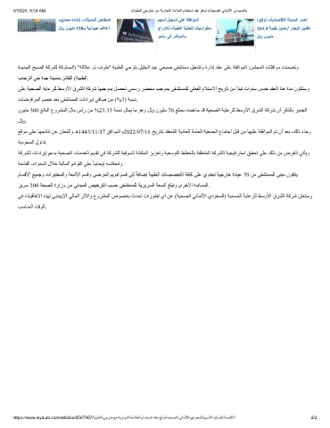 نﻮﯿﻠﻣ 300 ﻎﻟﺎﺒﻟا عوﺮﺸﻤﻟا لﺎﻣ سأر ﻦﻣ %23.33 ﺔﺒﺴﻧ ﻞﺜﻤﯾ ﺎﻣ ﻮھو ﷼ نﻮﯿﻠﻣ 70 ﻎﻠﺒﻤﺑ ﺖﻤھﺎﺳ ﺪﻗ ﺔﯿﺤﺼﻟا ﺔﯾﺎﻋﺮﻠﻟ ﻂﺳوﻷا قﺮﺸﻟا ﺔﻛﺮﺷ نأ ﺮﻛﺬﻟﺎﺑ ﺮﯾﺪﺠﻟا
