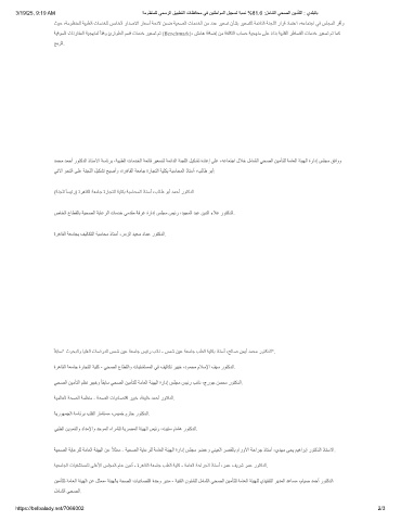 ﺪﻤﺤﻣ ﺪﻤﺣأ رﻮﺘﻛﺪﻟا ذﺎﺘﺳﻻا ﺔﺳﺎﺋﺮﺑ ،ﺔﯿﺒﻄﻟا تﺎﻣﺪﺨﻟا ﺔﻤﺋﺎﻗ ﺮﯿﻌﺴﺘﻟ ﺔﻤﺋاﺪﻟا ﺔﻨﺠﻠﻟا ﻞﯿﻜﺸﺗ ةدﺎﻋإ ﻰﻠﻋ ،ﮫﻋﺎﻤﺘﺟا لﻼﺧ ﻞﻣﺎﺸﻟا ﻲﺤﺼﻟا ﻦﯿﻣﺄﺘﻠﻟ ﺔﻣﺎﻌﻟا ﺔﺌﯿﮭﻟا ةرادإ ﺲﻠﺠﻣ ﻖﻓاوو