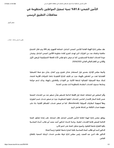 3/19/25, 9:18 AM ﻲﻣﺳرﻟا ﻖﯾﺑطﺗﻟا تﺎظﻓﺎﺣﻣ ﻲﻓ ﺔﻣوظﻧﻣﻟﺎﺑ نﯾﻧطاوﻣﻟا لﯾﺟﺳﺗ ﺔﺑﺳﻧ %81.6 :ﻲﺣﺻﻟا نﯾﻣﺄﺗﻟا