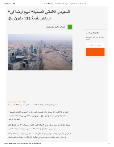 4/9/25, 9:27 AM "ﺔﯾدﺎﺻﺗﻗﻻا | ﷼ نوﯾﻠﻣ 122 ﺔﻣﯾﻘﺑ ضﺎﯾرﻟا ﻲﻓ ﺎﺿرأ ﻊﯾﺑﺗ "ﺔﯾﺣﺻﻟا ﻲﻧﺎﻣﻟﻷا يدوﻌﺳﻟا