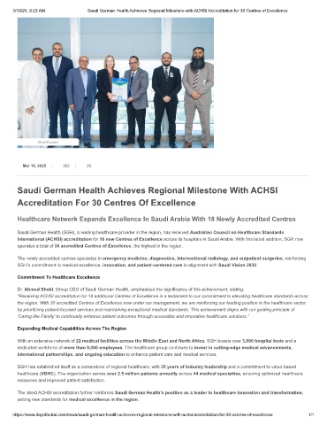 3/19/25, 9:23 AM Saudi German Health Achieves Regional Milestone with ACHSI Accreditation for 30 Centres of Excellence