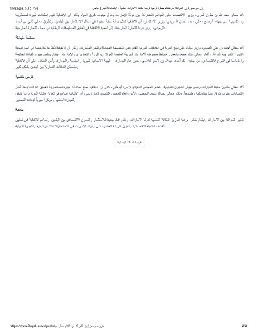 دﻣﺣأ نﺑ ﻲﻧﺎﺛ ﻲﻟﺎﻌﻣ قرطﺗو .نﯾدﻠﺑﻟا نﯾﺑ رﺎﻣﺛﺗﺳﻻا لﺎﺟﻣ ﻲﻓ ةدﯾدﺟ ﺔﺑﻘﺣ ﺔﯾادﺑ لﺛﻣﺗ ﺔﯾﻗﺎﻔﺗﻻا نأ ،رﺎﻣﺛﺗﺳﻻا رﯾزو ،يدﯾوﺳﻟا نﺳﺣ دﻣﺣﻣ ﻲﻟﺎﻌﻣ ﺢﺿوأ ،ﮫﺗﮭﺟ نﻣ .ﺎﻧﯾرﻣﺛﺗﺳﻣو