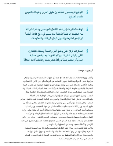 4/23/25, 3:40 PM "ﺔﯾﻟﺎﻣﻟا مﺋارﺟﻟاو لاوﻣﻷا لﺳﻏ ﺔﮭﺟاوﻣ ﻲﻓ نوﺎﻌﺗﻟا زﯾزﻌﺗﻟ ﺔﻟودﻟا ﻲﻓ ﺔﺻﺗﺧﻣﻟا تﺎﮭﺟﻟا نﻣ ددﻋ ﻊﻣ مھﺎﻔﺗ تارﻛذﻣ ﻊ ّ ﻗوﺗ "دﺎﺻﺗﻗﻻا