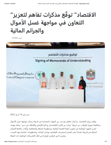 4/23/25, 3:40 PM "ﺔﯾﻟﺎﻣﻟا مﺋارﺟﻟاو لاوﻣﻷا لﺳﻏ ﺔﮭﺟاوﻣ ﻲﻓ نوﺎﻌﺗﻟا زﯾزﻌﺗﻟ مھﺎﻔﺗ تارﻛذﻣ ﻊ ّ ﻗوﺗ "دﺎﺻﺗﻗﻻا - Nas News UAE