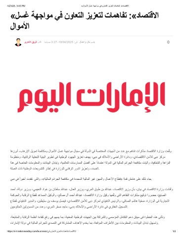 4/23/25, 3:43 PM «لاوﻣﻷا لﺳﻏ ﺔﮭﺟاوﻣ ﻲﻓ نوﺎﻌﺗﻟا زﯾزﻌﺗﻟ تﺎﻣھﺎﻔﺗ :«دﺎﺻﺗﻗﻻا