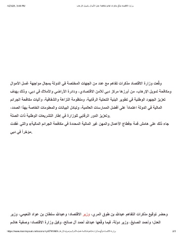 4/23/25, 3:44 PM بﺎھرﻹا لﯾوﻣﺗو لاوﻣﻷا لﺳﻏ ﺔﺣﻓﺎﻛﻣﻟ مھﺎﻔﺗ تارﻛذﻣ ﻊ ّ ﻗوﺗ دﺎﺻﺗﻗﻻا ةرازو