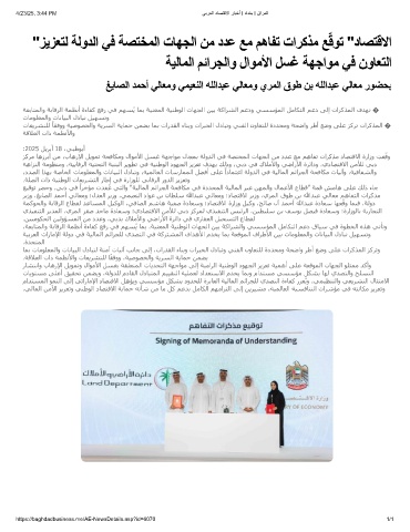 ﺰﻛﺮﻣ ﺎھزﺮﺑأ ﻦﻣ ،بﺎھرﻹا ﻞﻳﻮﻤﺗ ﺔﺤﻓﺎﻜﻣو لاﻮﻣﻷا ﻞﺴﻏ ﺔﮫﺟاﻮﻣ لﺎﺠﻤﺑ ﺔﻟوﺪﻟا ﻲﻓ ﺔﺼﺘﺨﻤﻟا تﺎﮫﺠﻟا ﻦﻣ دﺪﻋ ﻊﻣ ﻢھﺎﻔﺗ تاﺮﻛﺬﻣ دﺎﺼﺘﻗﻻا ةرازو ﺖﻌﻗو