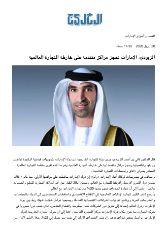 ﻞﺻاﻮﺗ ةﺪﻴﺷﺮﻟا ﺎﻬﺗدﺎﻴﻗ تﺎﻬﻴﺟﻮﺘﺑ تارﺎﻣﻹا ﺔﻟود نإ :ﺔﻴﺟرﺎﺨﻟا ةرﺎﺠﺘﻠﻟ ﺔﻟود ﺮﻳزو ،يدﻮﻳﺰﻟا ﺪﻤﺣأ ﻦﺑ ﻧﺎﺛ رﻮﺘﻛﺪﻟا لﺎﻗ