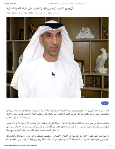 ﺎﮭﺗدﺎﯾر ﻞﺻاﻮﺗ ةﺪﯿﺷﺮﻟا ﺎﮭﺗدﺎﯿﻗ تﺎﮭﯿﺟﻮﺘﺑ تارﺎﻣﻹا ﺔﻟود نإ ﺔﯿﺟرﺎﺨﻟا ةرﺎﺠﺘﻠﻟ ﺔﻟود ﺮﯾزو يدﻮﯾﺰﻟا ﺪﻤﺣأ ﻦﺑ ﻲﻧﺎﺛ رﻮﺘﻛﺪﻟا ﻲﻟﺎﻌﻣ لﺎﻗ